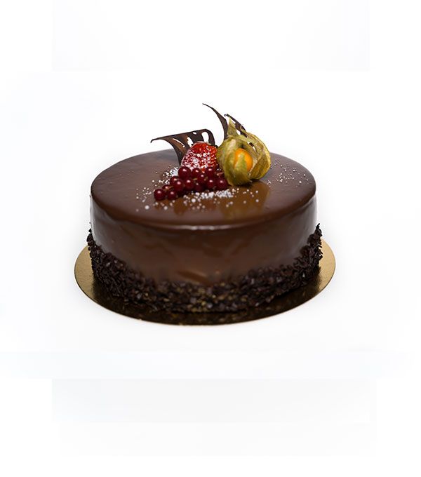 Tortul este decorat cu praline intregi, fulgi de ciocolata si posibil flori comestibile pentru a adauga un element estetic si o textura v